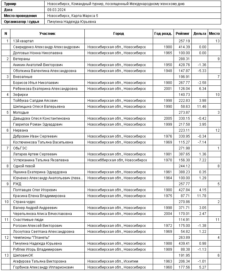 09.03.2024 г., Турнир, посвященный Международному женскому дню