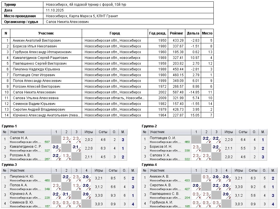 11.10.2025 г., 4й годовой турнир с форой, 10й тур