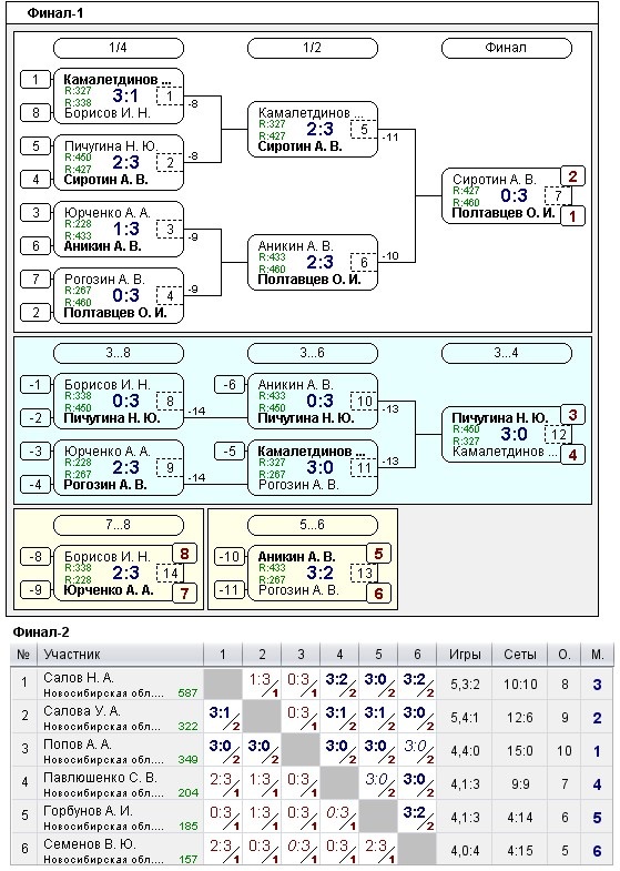 Таблицы любительских турниров
