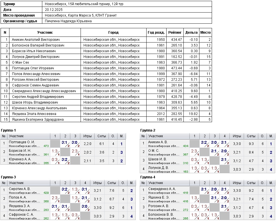 15й годовой любительский турнир, 12й тур