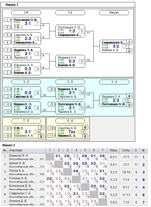 Таблицы любительских турниров
