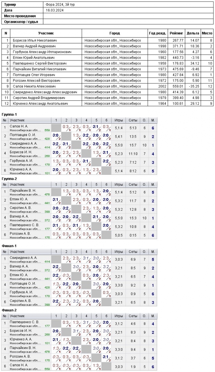 16.03.2024 г., 3й годовой турнир с форой, 3й тур