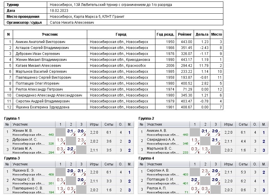 18.02.2023г., 13й Любительский турнир с ограничением до 1го разряда, 2ой тур