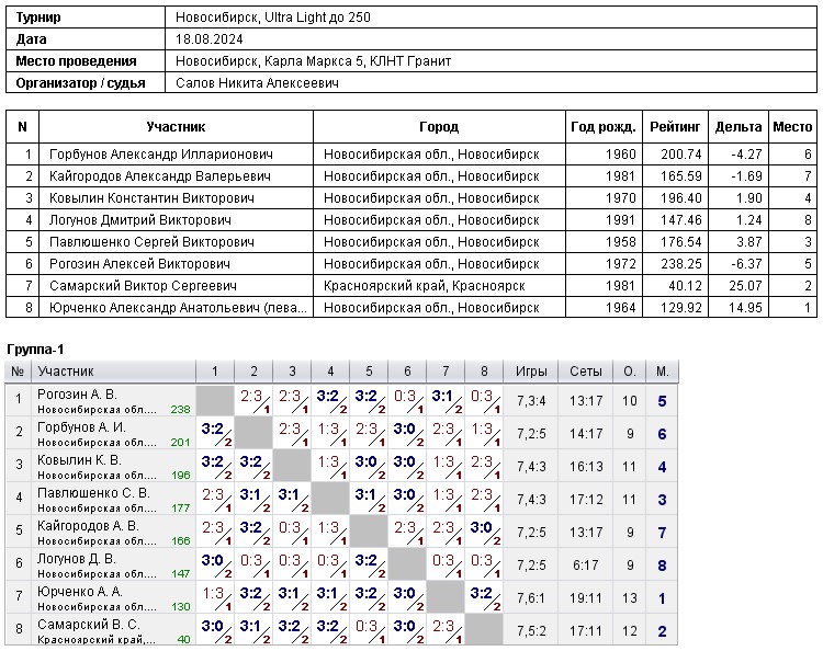 Таблицы любительских турниров
