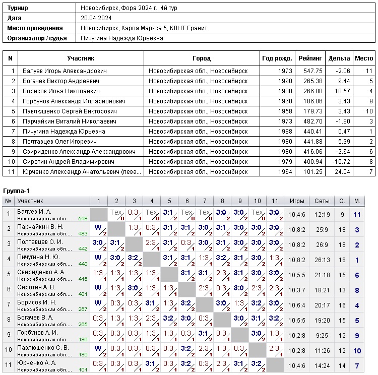 20.04.2024 г., 3й годовой турнир с форой, 4й тур