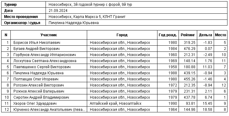 21.09.2024 г., 3й годовой турнир с форой, 9й тур