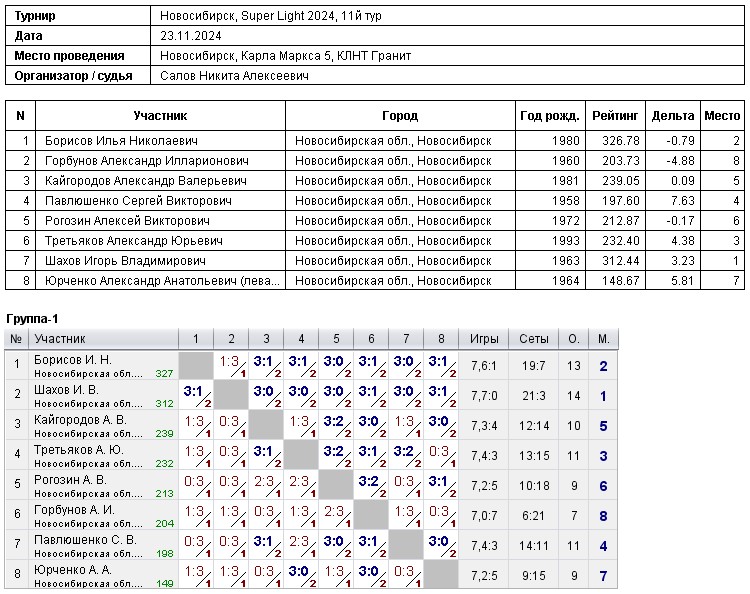 23.11.2024г., Super Light, 11й тур