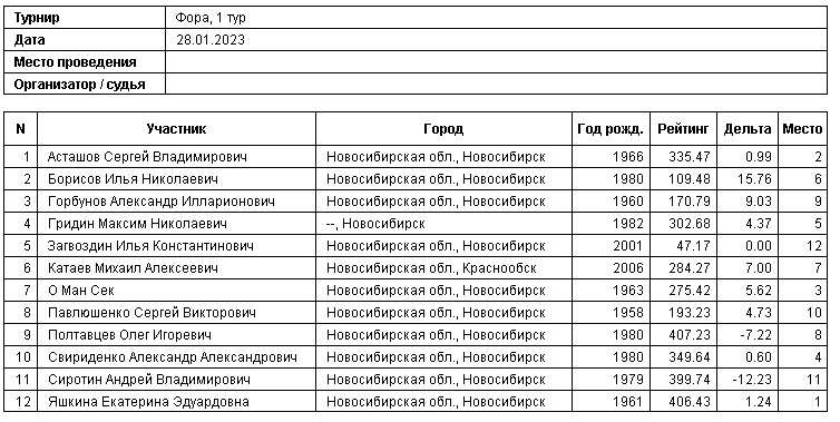 28.01.2023Г., 2ой Годовой турнир с форой, 1й тур