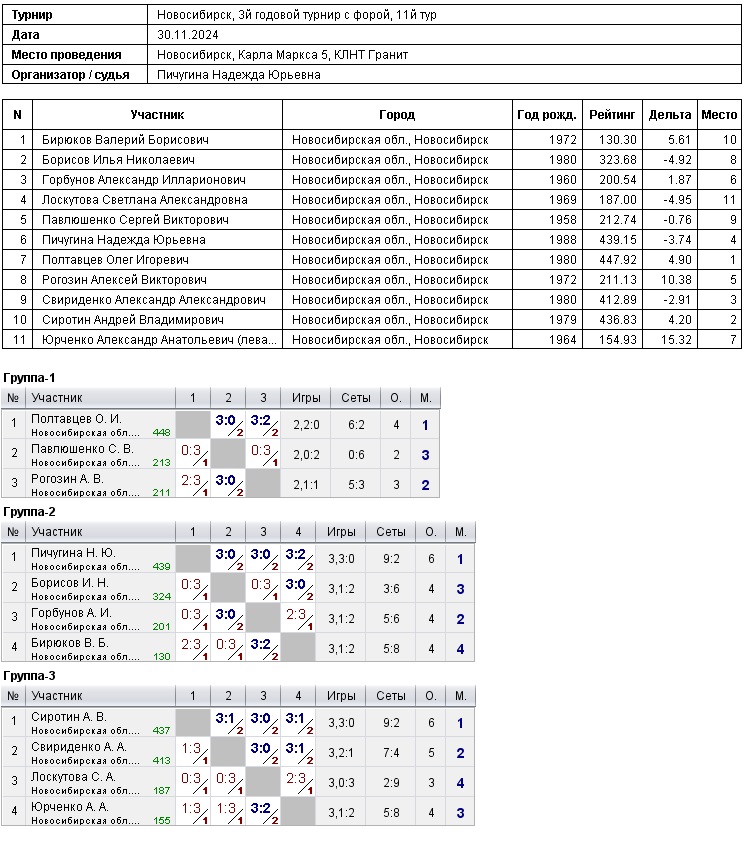 30.11.2024 г., 3й годовой турнир с форой, 11й тур