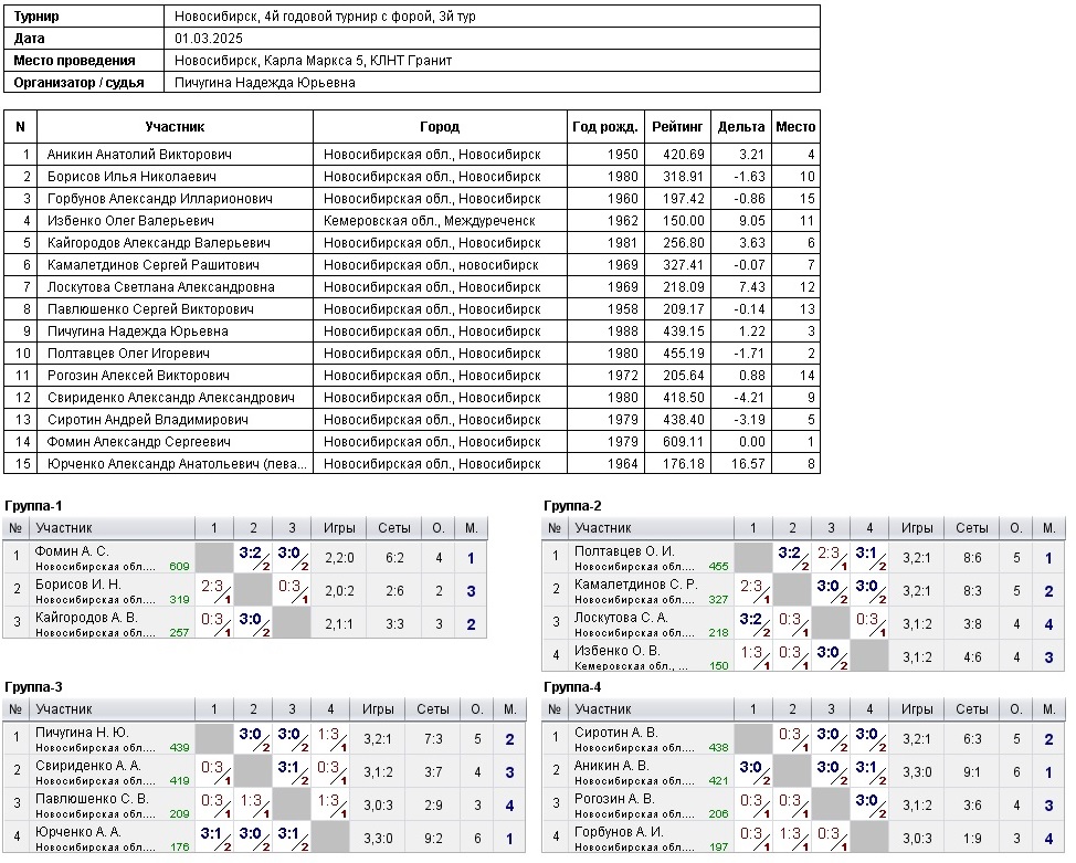 4й годовой турнир с форой, 3й тур