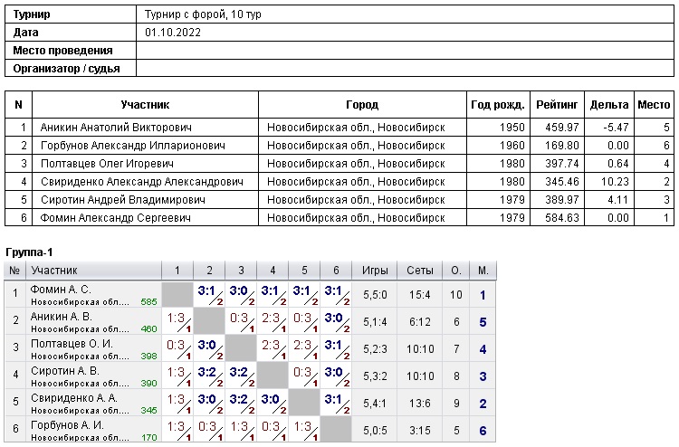 01.10.2022, 1й Годовой турнир с форой, 10й тур