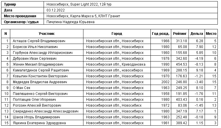 03.12.2022, Super Light 2022, 12й тур