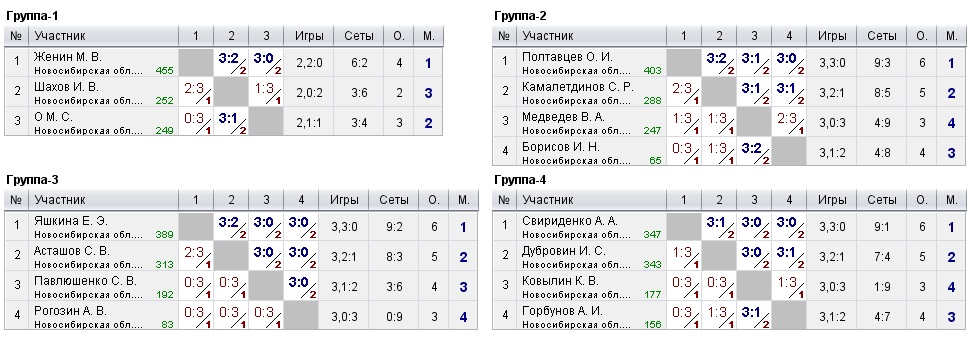 Таблицы любительских турниров