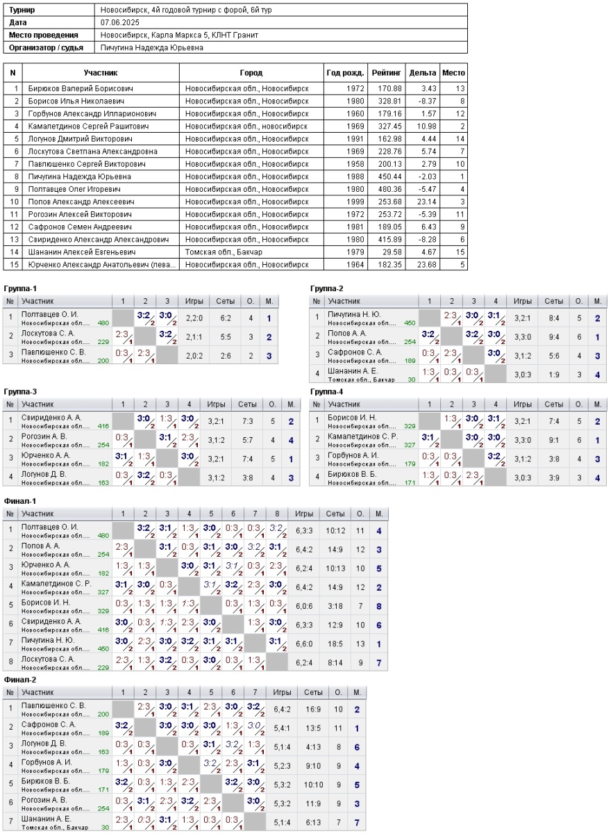 07.06.2025 г., 4й годовой турнир с форой, 6й тур