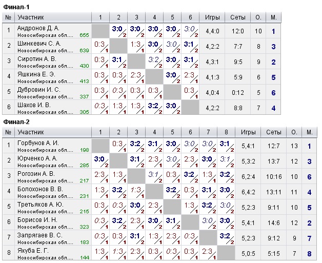 Таблицы любительских турниров