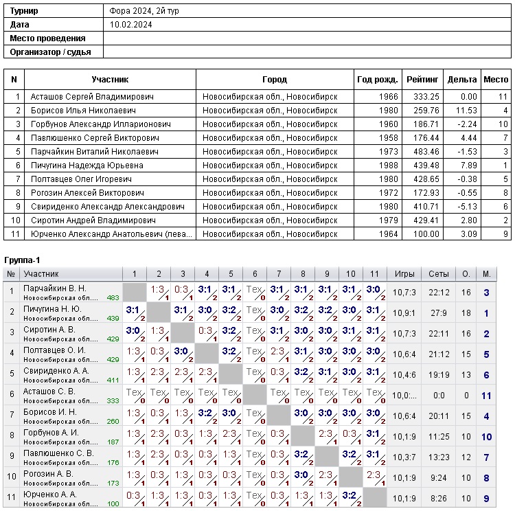 10.02.2024 г., 3й Годовой турнир с форой, 2й тур
