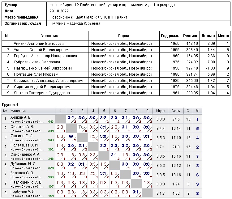 12 Любительский турнир с ограничением до 1го разряда, 10 й тур