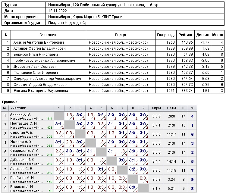 12 Любительский турнир с ограничением до 1го разряда, 11й тур
