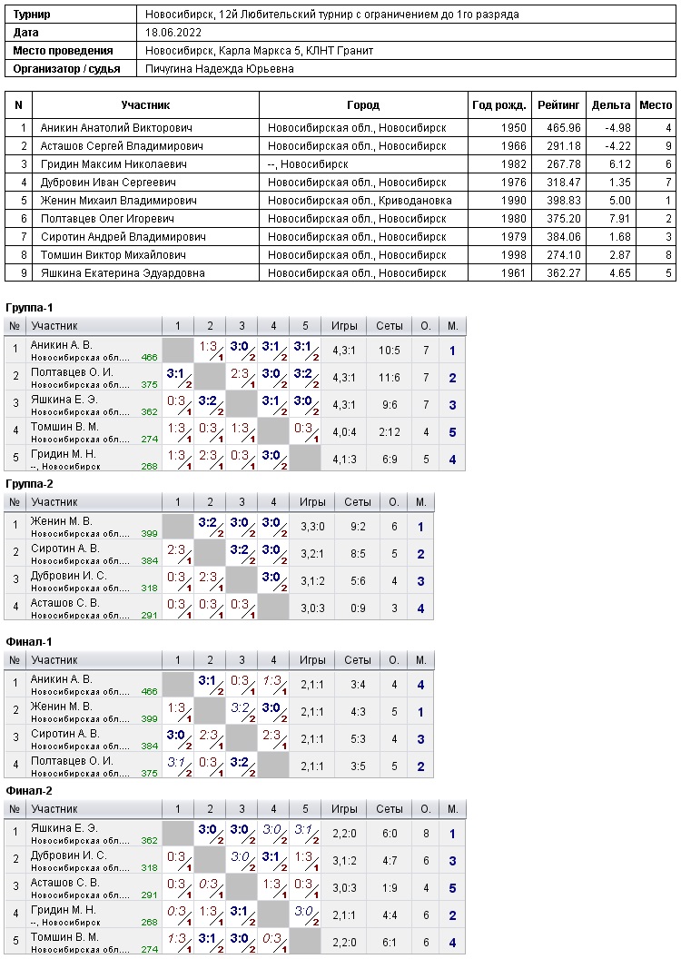12 Любительский турнир с ограничением до 1го разряда, 6й тур