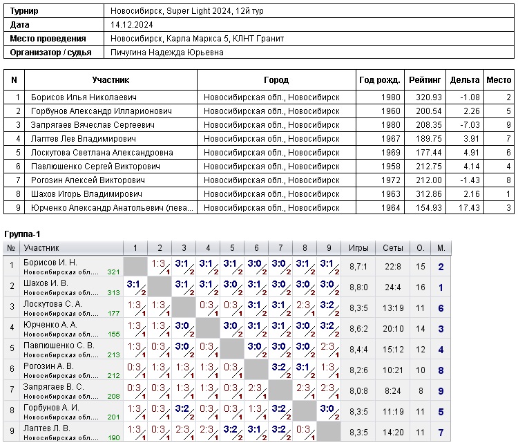 14.12.2024 г., Super Light, 12й тур