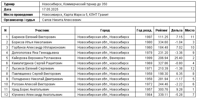 17.05.2025 г., коммерческий турнир до 350 рублей