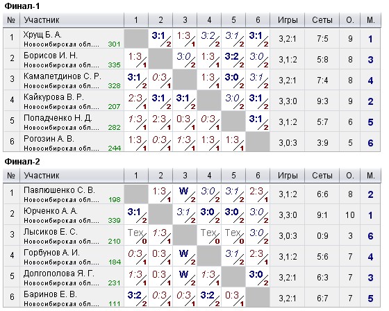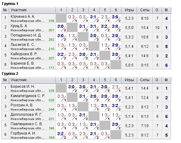 Таблицы любительских турниров