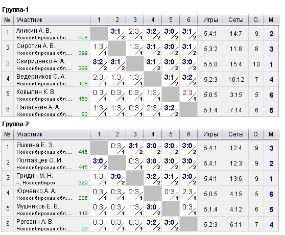 Таблицы любительских турниров