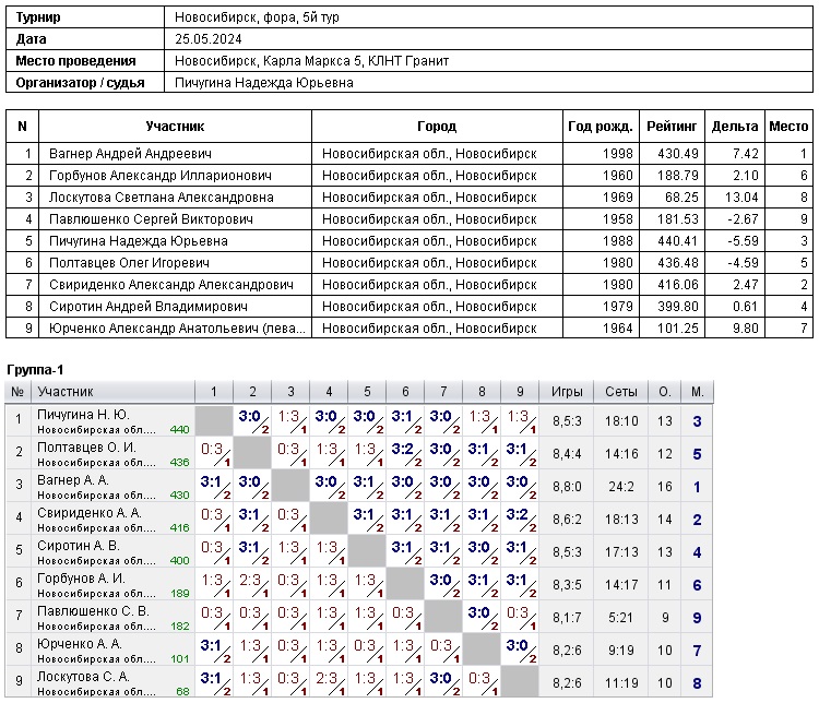 25.05.2024 г., 3й годовой турнир с форой, 5й тур