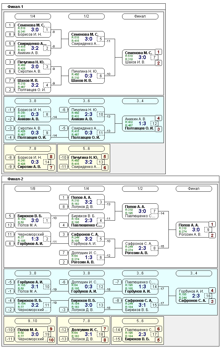 Таблицы любительских турниров