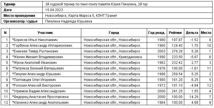 3й годовой турнир по пинг-понгу памяти Юрия Пичугина, 2й тур