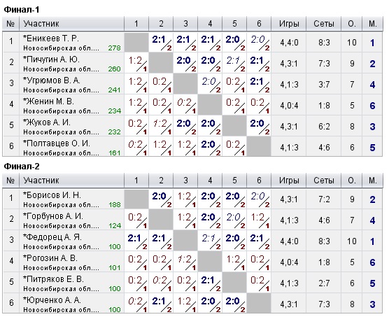 Таблицы любительских турниров