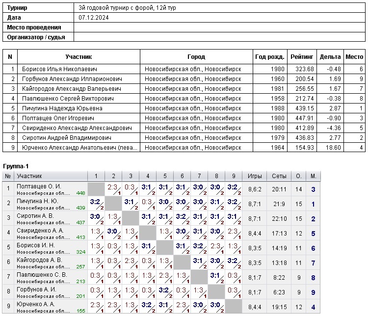 7.12.2024 г., 3й годовой турнир с форой, 12й тур