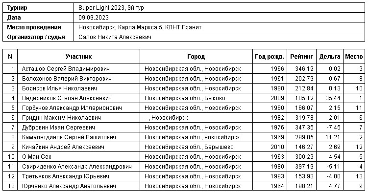 9.09.2023 г., Super Light 2023, 9й тур