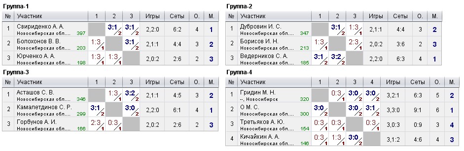 Таблицы любительских турниров
