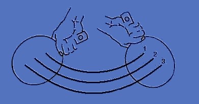 Сила вращения также зависит от того, каким местом ракетки производится удар по мячу. Чем ближе место удара к ручке. Тем вращение будет меньше, и наоборот. На рисунке: максимальное вращение достигается в точке - 3, минимальное - в точке 1.