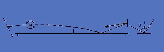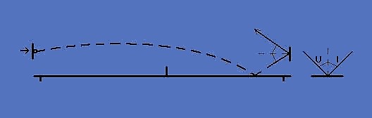 Удар без вращения. Угол отскока мяча от стола равен углу падения мяча на стол.